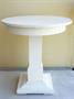 Starý stabilní secesní kulatý stůl z masivního dřeva s pozdějším neprofesionálním bílým nátěrem, střední Evropa kolem r. 1900. Průměr 70 cm, výška 76 cm, dobrý stav bez poškození, běžné známky stáří a používání, barva místy drobně odloupnuta (viz fotky).