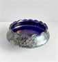 váza ze sklárny Loetz z Klášterského Mlýna, čiré modré sklo přejímané briliantovým opálem s natavenými broky z čirého hnědého skla (candia), hutně tvarovaný okraj, irizované, na zakázku pro Robert Medeu & Co., zřejmě pro doplnění kovové konstrukce. Zdroj: H. Ricke, Lötz, Bohemian Glass 1880–1940, Mnichov 1989, sv. 2, katalog výřezů vzorů, str. 368, č. 1335/3. Vyrobena v r. 1900, průměr 23,5 cm, výška 9,5 cm.