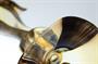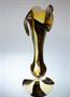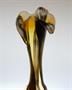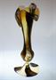 Stylová hutně tvarovaná váza z jemného opálového skla, stojící elegantně na patce. Váza má organicky tvarované hrdlo a je zušlechtěná malovaným dekorem. Vespod je signovaná gravírovaným monogramem DM, práce z počátku minulého století, pravděpodobně ze severních Čech. Dobrý stav, rozměr - v. 27cm, prům. 11cm
