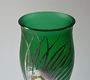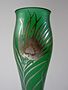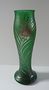 Sklo lahvově zelené irizované.Váza štíhlého projmutého válcovitého