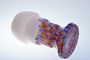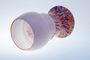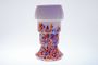 Váza stupňovitě se rozšiřující z barevného brokového skla v kombinaci se starorůžovým sklem. Pravděpodobně provedla šumavská sklárna Johann Loetz - Klášterecký Mlýn po roce 1910. Perfektní stav, bez poškození, rozměr - v. 16cm, prům. 8,5cm