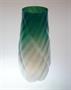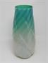 Jedinečná secesní váza z opticky modelovaného opálového a zelinkavého skla s vnitřním a vnějším žebrovaným dekorem a povrchovým irisem. Vespod na dně vázy je vtlačený ornament květu. Pravděpodobně provedla šumavská sklárna Klášterský Mlýn LOETZ ( LÖTZ ) kolem roku 1900. Dobrý stav, rozměr - v. 27cm, prům. 12cm