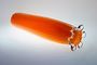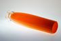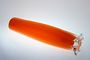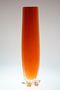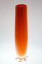 Elegantní váza s jádrem z výrazně barevného oranžového Tango skla, které je přejímané čirou sklovinou. Čiré sklo je foukané do formy a linky vycházející ze šesti nožiček patky tvoří vystouplý geometrický ornament. Noblesní štíhlý lehce konvexní tvar, provedly sklárny v pohraniční - šumavské, nebo v severních Čechách počátkem minulého století. Dobrý stav, rozměr - v. 29cm, prům. 7,5cm