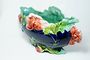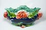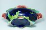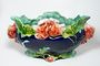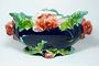 Velmi dekorativní keramická žardiniera v čistém secesním stylu s květinovým motivem. Vně je výrazně barevná glazovaná kobaltová modř a zelinkavý vnitřek. Počátek minulého století po roce 1900, neznačeno. Dobrý stav bez poškození. Rozměr - š. 36cm, v. 20cm, h. 17cm