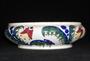 Miska keramická, malovaná, ve stylu art deco, značená tištěnou značkou SERAPIS WAHLISS. Teplice, Trnovany, kolem 1910. Průměr 25 cm.