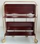 Servírovací stolek na kolečkách. 1970´ Německo. Pomosazený kov, umakart s imitací dřeva. Rozměry: v-78, š-68, h-42 cm. Stav velmi dobrý.