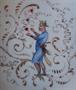 Porcelán bílý, malovaný, zlacený, glazovaný. Uprostřed talířků malovaný námět líčící výjev ze života Číňanů - Chinoiserii, orientální postavy mužů se zelenými a červenými kruhy, žonglujícími s míčky, ve zlatých rozvilinách. Horní široký okraj zdobený reliéfním dekorem se zeleným a zlatým ornamentem. Značené zespodu - Klášterec nad Ohří, vtlačené číslo 78 ( rok 1878 ? ) . Značka z období 1830 - 1895. Průměr 19,5 cm.