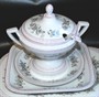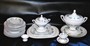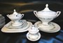 Šestiosobní jidelní servis.Glazovaný servis zdoben květinovým dekorem.Servis nebyl nikdy používán.Zdobeno značkou S.Porcelánka Slavkov.Značka používaná od roku 1869 až do první světové války.6ks talíř hluboký 6ks talíř mělký 6ks dezertní talíř,2ks Terýna,1ks omačník,1ks slánka,4ks velkých tálířů.