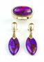 Set výrazných šperků ze stříbra osazených fialovým kamenem s krásnou kresbou. Vyrobeno ze stříbra ryzosti 925/1000, celková váha kompletu 15,45 g. Velikost prstenu 53. Délka náušnice 3,2 cm, zapínání na puzetu. Originální efektní nadčasové šperky ve výborném stavu vhodné pro denní užití.