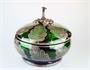 174128Skleněná mísa s víkem se stříbrnou montáží