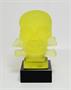 145126Skleněná plastika - Lebka z uranového skla, hyalitový sokl