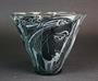 Váza z čirého skla zdobena rytým motivem stylizovaných dívčích hlav. Bruselská estetika. Váza je nesignovaná. Výška 16,5 cm , šířka 20,5 cm. Kamenický Šenov?
