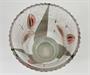 Skleněná váza z produkce státní odborné školy sklářské - Kamenický Šenov. Česká provenience kolem roku 1920. Sklo s různými strukturami šedavě zbarvené ve vrstvách, technika odleptávání. Na povrchu matované rondokubistické zátiší.