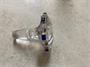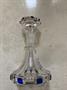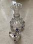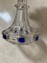 skleněný flakon Adeco s modrými skleněnými fasetami, které jsou z boku zlacene ,lehce odřené.