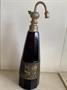 Skleněný flakon Moser z fialového skla a kovovou montáži , vyška 21,5cm,5 cm zlaceny řezaný antický vyjev,,stav používaný