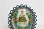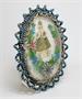 140599Skleněný oválný medailon - Pražské Jezulátko nápise J.H.S.