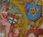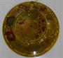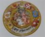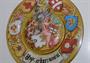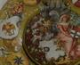 Skleněný talíř o průměru 37 cm, luxusně malovaný smalty po celé ploše figurálně a zednářskými symboly.