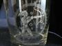 Konická číše, čiré sklo, zdobené řezbou, motiv Střelec (Schütze), návrh Věra Lišková (Vera Liskowa, 1924-1985), provedení J. u. Lobmeyr, Wien, značeno řezanou značkou ve dně, v. 8,5 cm, horní průměr 8,1 cm.