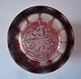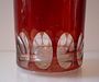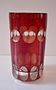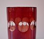 Sklo čiré přejímané rubínovou lazurou,válcovitého tvaru.Zespodu