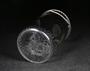 klasicistní sklenice s rytým monogramem TN, čiré sklo, vrchní část bohatě zdobená rytými girlandami, spodní část s probrušovanými elipsami, Čechy, kolem roku 1815; uvnitř škrábanec po diamantovém prstenu; výška 12 cm, průměr 7,5 cm