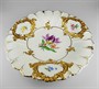 velký závěsný porcelánový talíř pro slavnostní účely, ve stylu druhého rokoka, resp. míšeňského historismu, zřejmě podle původního návrhu Ernsta Augusta Leuteritze, ručně malovaný květinový motiv s výrazným zlacením reliéfních ozdob a rokajových kartuší, německá porcelánka Meissen, kolem r. 1940; průměr 29 cm