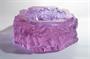 Velmi masivní popelník ve stylu ART - DECO z broušeného a matovaného alexandritového skla ( alexandritové sklo mění barvu podle spektra osvětlení, na denním světle má odstín lila a při umělém osvětlení je modrozelené ). Po obvodu je plastický reliéf šesti sklonů s chobotem nahoru ( podle asijských tradic slon s chobotem nahoru přináší štěstí a vítá nové příležitosti ). Provedly krystalerie firmy Curt SCHLEVOGT jako součást kolekce luxusního skla INGRID. Dobrý stav, rozměr - prům. 18cm, v. 7,5cm, hmot. 3,1kg!!