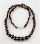 šňůra velmi tmavých vínově zbarvených almandinů, 85 kusů starého nepravidelného brusu, novější uzávěr, střední Evropa, 2. polovina 19. století, délka 48 cm, průměr největších kamenů 0,9 cm - 1,00 cm