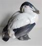 Salónní porcelánová figura kachny, s podglazurní malbou ve stylu Kodaň a Rosenthal. Výrobce dánská továrna porcelánu Bing & Grondahl. Založena v roce 1853 Frederikem Vilhelmem Grondahlem a bratry Meyerem Hermanem Bingem a Jacobem Hermanem Bingem ve Vesterbograde před bránami Kodaně (Kopenhagen). Značeno zelenou tištěnou značkou se třemi věžemi, z let 1915-1947 a modrou podpolevní značkou B & G a malovaným 1932 LL (malířka Lotte Lindahl 1902-1946 ?). Vtlačená značka návrháře KM~ 1918 (Knud Max Moller ?, srovnej s jeho vloženou značkou uvedenou v literatuře. Jeho porcelánová figura raroha je ve sbírce Metropolitan Museum of Art). Výška 23 cm, délka 22,5 cm.