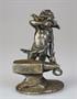 drobná soška Amorka (Cupida) kovajícího hroty šípů, postříbřená cínová kompozice, střední Evropa, kolem r. 1890, rozměr 5.7 x 3.6 cm; původní patina; sběratelský bibelot