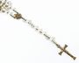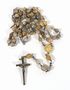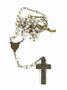 Pět růženců v různém provedení, s různými křížky i různým použitým materiálem - korálky, lakovaná semena. Jeden růženec je dětský. Délka 38 cm (dětský) a 46 cm, 56 cm, 50 cm a 86 cm.
