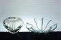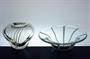 Vzácně vídaná stará souprava z hutního skla - vázička a miska. V masivní čiré sklovině je zatavený dekor bílých proužků. Návrh kolem roku 1950 je dílem malíře, grafika a sklářského výtvarníka - Jan KOTÍK (*1916 Turnov +2002 Berlín), jeho tvorba je zastoupena v mnoha našich i zahraničních sbírkách. Provedení sklárna ÚUŘ Škrdlovice. Dobrý stav, rozměr - vázička v. 10 x 11 x 9cm, miska prům. 18cm, v. 6,5cm (publikováno časopis TVAR r. 1952 viz posl. foto )