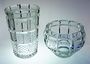 98169Souprava z masivního broušeného skla - váza a mísa s geometrickým dekorem