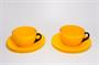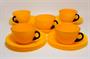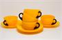 Souprava pěti půvabný šálků s podšálky z hutně tvarovaného a výrazně barevného, oranžového Tango skla s oušky z hyalitového ( opakního -
