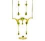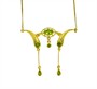 Souprava šperků ze žlutého zlata ryzosti 585/1000 (punc labuť) - náhrdelník, prsten a náušnice. Šperky zdobí zelené olivíny. Velikost prstenu 56. Celková hmotnost soupravy činí 15,98 g (z toho 10,00 g náhrdelník, 2,70 g prsten a 3,28 g náušnice). Šířka závěsu 5,5 cm, výška 4,5 cm. Délka náhrdelníku cca 48 cm. Délka náušnice cca 3,5 cm.