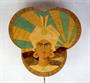art deco kazeta (šperkovnice) z ořechového masivu, výtvarně působivé barevné intarzování, opravovaný zámek, stopy používání, jinak dobrý stav; západní Evropa, kolem roku 1925, šířka 33 cm, výška 8 cm