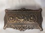 Starožitná zdobená šperkovnice ( původně sloužila na známky ). Rozměry 14,5 x 8 cm. Materiál bronz .