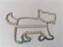 Nevšední velká spona na šátek, z období art deco, ve tvaru foxteriéra, zhotoveno z pochromovaného obecného kovu, šířka 10,5 cm. šátek není součástí nabídky.