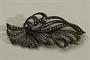 Stříbrná brož ozdobená markazity, hezké provedení, Velmi dobrý stav, velikost 6cm na 3 cm, Ag 835/1000, 7 g, atest puncovního úřadu přiložen