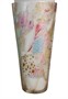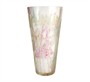 Konická váza z čirého, leptaného a malovaného skla. Výška 28,5 cm. Horní průměr 15,0 cm. Rok 1947. Publikováno v knize České sklo, vydalo Východočeské muzeum v Pardubicích. Na dně vázy prasklina.