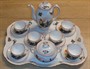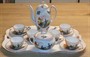 Stará (1/2. 20: stol.) porcelánová souprava s orientálními motivy,značeno na dně,výška konvice 18 cm,šálku 3,8 cm,průměr podšálku 11 cm,souprava je v dobrém stavu,stav viz foto.