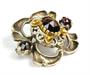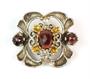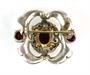 Masivní stříbrná brož osazená almandiny, vyvýšený střed zlacen, stříbro 850, celková hmotnost 8,85 g, jehla obecný kov. Šířka 3 cm.