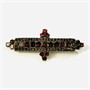 Starožitná brož v novorenesančním stylu, osázeno českými granáty, středový pás a ozdobné výstupky kulatého plochého brusu, rámováno kontrastně menšími kulatého routového brusu, fasováno nýtkovou a zrnkovou technikou, větší kameny opatřeny průsvitkami. Precizní tuzemská granátnická práce z 80. let 19. století. Reflexe dobových pseudoslohů v granátovém šperkařství je méně častá i díky tomu se jedná o sběratelsky zajímavý kousek.