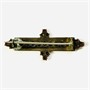 Zasazeno ve slitině tombaku. Hmotnost 5,09 g, délka 50 mm, šířka 20,5 mm. Zapínání na "C" v pořádku, v minulosti zezadu opravováno (při nošení není vidět, nečištěno, ponecháno s přirozenou patinou, celkově v zachovalém stavu.