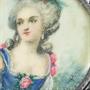 Starožitná stříbrná brož s ruční malbou šlechtičny,
