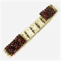 Výrazný náramek skládající se ze stejných obdélných článků osazených ve dvou stupních různě velkými českými granáty kulatého brusu, fasováno abdékovou technikou. Tuzemská granátnická práce z konce 19. století.