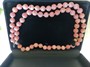 Nepřehlédnutelný, masivní náhrdelník skládající se ze šňůry kulatých korálů rodolitu.