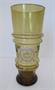 Starý pohár s ruční malbou z foukaného skla.Sklo je zelenohnědé barvy.Krásné drobné bublinky ve skle.Velmi dobrě zachovalý stav bez poškození jen lehce setřené zlacení a barva.Vyrobeno na počátku 20. století v Nemecku.Výška: 16,5 cm Pruměr nahoře: 6,8 cm