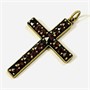 Elegantní přívěšek ve tvaru latinského kříže, osazeno českými granáty kulatého routového brusu fasováných nýtkovou technikou. Tuzemská granátnická práce z poslední pětiny 19. až počátku 20. století.