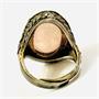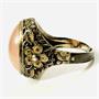 Výrazný, dekorativní prsten, jeho dominantou je oválná mugle přírodního růženínu. Fasováno v plně přiléhající obrubě, hlavice zdobena jemným filigránovým pletencem a motivem květů. Velmi kvalitní ruční čínská práce z 20. až 30. let 20. století.