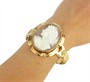 Klasicisní zlatý náramek s kamejí z mušloviny, západní Evropa, kolem roku 1830, zlato o ryzosti 520/1000 o celkové hmotnosti 21,20 g, průměr náramku: 6 cm. Rozměry zlaté ozdoby s kamejí: 5 x 4,5 cm, rozměry kameje: 3,5 x 3 cm. Atest Puncovního úřadu.